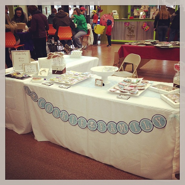 So my neighbor rescued me, and I will be eternally grateful that I didn’t have to think about table coverings and plates and stands… And while she packed up some things for me to use on the tables, I spent 48 hours in a sea of cookies coupled with panic. I didn’t have labels, I didn’t have a sign saying who we were or how much they were, I didn’t even know what to charge!