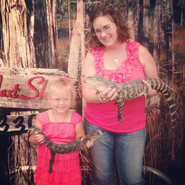I still can’t believe she talked me into holding an alligator with her.  She’s definitely a brave girl – and she keeps telling us that she’s going to be an Animal Doctor AND a clown.  I can completely see that working out for her right now!