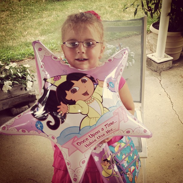 Averie was given $20 to spend as she saw fit.  Some of that money was to be for rides, but Grandad ended up buying a ride bracelet for her.  Spoiled little girl 🙂  She did well in her spending though – she spent $5 on a duck game and won a giant dora wand, and the rest of her money went to food (both lunch and dinner).
